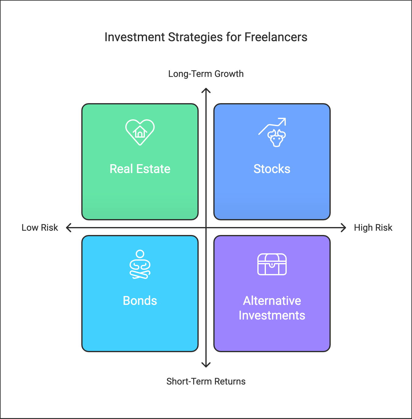 Diversification ensures that if one asset class underperforms, others in your portfolio can help cushion the impact, offering freelancers peace of mind despite irregular income streams